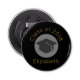 Une bouteille ouverte qui dit Classe de 20xx et le nom du diplômé, écrit en or couleur. Conçu avec un capuchon de graduation noir entouré d'un cercle blanc semi-transparent. Arrière - plan noir avec lettrage or est simple mais élégant.