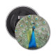 Rond, ouvre-bouteille magnétique qui présente l'image photo d'un magnifique Peacock bleu avec plumage coloré.