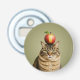 Chatte drôle avec une pomme équilibrant sur le dessus de sa tête.