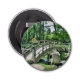 Un pittoresque pont en arc japonais s'étend gracieusement sur un étang tranquille, dont le design élégant se reflète dans les eaux calmes en contrebas. Entouré d'une végétation luxuriante, le pont englobe la beauté intemporelle de l'esthétique des jardins japonais.