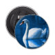 A lovely nature scene of a white swan swimming on a peaceful blue lake. The dark blue shadows contrasts nicely with the soft blue lighting on this peaceful swan.