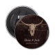 Rustique crâne de vache taureau western pays rodéo cowboy mariage dîner réception ouvre-bouteille. Texture Brown style de ferme pour les cadeaux pour les invités. Ancien antiquité vintage sauvage de l'ouest. Cool, tendance, moderne ferme animal design personnalisé. Personnalisez votre typographie. Copyright de l'image Marg Seregelyi Photography.