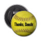Gros plan du softball jaune usagé avec texte "Merci coach".