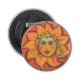 Bouton d'ouvre-bouteille avec des oeuvres d'art lumineuses, soleil céleste avec visage souriant, couleurs orange et rouge. Le soleil nous donne une lumière et apporte la vie. Il représentera les personnalités, les égos et l’esprit des gens. Il rendra les gens originaux et symbolise la force créatrice de la vie. Ce design sera un grand cadeau pour Leo ou juste pour quelqu'un de très spécial dans votre vie. Peinture pastel, art imaginaire / illustration, folklore russe / slavique. © Clipso-Callipso / Julia Khoroshikh www.clipsocallipso.art #clipsocallipso #sun #sunface #giftideas #giftforleo #celestialsun #fantasyart #zazzle #zazzlemade #accessoires #button