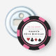 Ce décapsuleur de style jeton de poker rose, noir et blanc ferait un cadeau parfait pour la personne qui célèbre son anniversaire, ou pour toute la fête en tant que cadeau ! Personnalisez votre design avec un nom et une date de naissance # en noir au centre, et votre texte personnalisé en rose en haut.