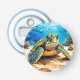Une représentation artistique éclatante d'une tortue de mer aux couleurs vives nageant parmi les coraux dans une scène océanique claire.