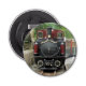Le Pays de Galles, terre des petits trains à vapeur. Un train rouge magnifiquement préservé et des voitures vertes pleines de passagers.
