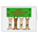 Cartoon men wearing only holly holding up a green sign that says ' Happy Christmas Day Birthday'.