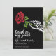 Cette invitation unique à l'anniversaire capte le thème ludique mais poignant de "Mort à ma jeunesse" avec un flair visuel saisissant. Le design comporte une main squelette, symbole du passage du temps, tenant gracieusement un rose dynamique, représentant la beauté et la vitalité de la jeunesse. Le contraste entre le squelette et le rose illustre parfaitement la transition de la jeunesse à une phase plus mature de la vie. L'arrière - plan est subtil mais sophistiqué, complétant l'image centrale frappante sans l'accabler. Cette invitation est parfaite pour toute personne qui souhaite célébrer un anniversaire marquant avec une touche d'humour et une profonde reconnaissance pour le voyage de la vie.