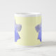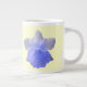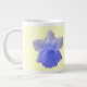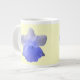 Cette énorme tasse présente une belle photo macro d'une Daffodil montrant ce plante dans de beaux détails après une douche à effet pluie. La fleur a été colorée artificiellement, ce qui donne des pétales extérieurs blancs étonnants avec des veines bleues et une jolie trompette bleu clair. La photo est si détaillée que vous pouvez voir les petites gouttelettes d'eau sur la fleur. L'arrière - plan est jaune pâle.