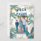 Ce carte photo de Noël "deck the palms" est orné de lumières de vacances, de palmiers et de feuilles tropicaux sur un arrière - plan blanc. À l'envers, un arrière - plan bleu marine avec des motifs blancs. Personnalisez-le selon vos besoins. Vous pouvez trouver des produits correspondants dans mon magasin.