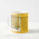 Cette tasse pour des défenseurs de l'indépendance écossaise comporte une photographie d'un fragment de la déclaration d'Arbroath - une déclaration de l'indépendance écossaise - écrite dans le latin et signé le 6 avril 1320, à l'abbaye d'Arbroath, six ans après Robert le Bruce a défait l'anglais chez Bannockburn en 1314. L'extrait le plus cité est : "Pour tant que mais cent de nous reste vivant, nous sur aucune condition ne serons jamais amenés selon la règle anglaise. Elle n'a en vérité pas lieu pour la gloire, ni la richesse, ni les honneurs que nous combattons, mais pour la liberté - pour seul cela, qu'aucun homme honnête n'abandonne mais avec la vie elle-même." À la base du manuscrit sont les joints de cire des signataires. Le 700th anniversaire de la bataille de Bannockburn a lieu cette année. Le référendum sur l'indépendance pour l'Ecosse du gouvernement de Westminster a lieu également cette année, le 18 septembre 2014, quand les gens habitant et travaillant en Ecosse voteront l'avenir du pays comme nation indépendante. Vous pouvez changer la couleur jaune d'arrière - plan avec le bouton de personnaliser.