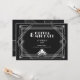 Invitation vos amis et votre famille dans un style élégant avec ces invitations de mariage Art déco 7" x 5" vintage noir et blanc avec un design déco et texte porte-place pour les noms de couple mariage, date et heure du mariage, lieu, adresse du lieu et réception.