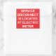 Un groupe de six étiquettes pour électriciens à utiliser lorsque le service électrique principal se déconnecte est situé au compteur électrique. Le étiquette dit : "LA DÉCONNEXION DE SERVICE EST SITUÉE À L'ORDINATEUR ÉLECTRIQUE."