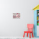 Decoration Christmas Poster in pinks, red grey and white. This cheerful hanging decoration Christmas scene with sparkles and balls with a red silk bow would bring a happy occasion together. Red Text. Customize your text.