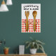 Conception facile à personnaliser représentant les mariés comme une fourchette et une cuillère de dessin animé mignonnes. Modifiez le texte pour ajouter des noms.