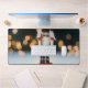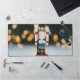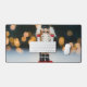 L'ornement classique de Noël de SlipperyJoe, casque de soldat noir, veste blanche avec détails jaunes, accents rouge vif, pantalon bleu, garnitures en faux-fourrure blanche douce, esthétique de vacances moderne et épurée, bokeh circulaire, orbes chaudes et lumineuses, atmosphère magique, cadeaux LGBTQIA, lumières ambre, effet de halo, suspendu à un mince cordon doré, fond riche et sombre doucement flou, charme authentique, personnage de vacances ajoutant de la profondeur, luminosité luxueuse, nostalgie, savoir-faire.