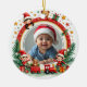 All aboard the holiday magic! This double-sided ornament is a joyful celebration of your little one’s first Christmas, bursting with playful charm and personalized warmth. One side features your custom photo framed by a festive flurry of cheerful elves, twinkling stars, wrapped gifts, pine branches, and a classic red toy train—all illustrated in a bright, whimsical style that captures the wonder of the season.