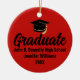 This classic red and black custom senior graduate Christmas ornament features modern typography of your high school or college name for the class of 2026 with your grad photo on the back. Customize with your graduating year under the chic handwritten script and grad cap for a great personalized graduation keepsake gift.