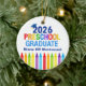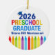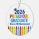 This customizable 2026 preschool graduation Christmas ornament features a cool grad cap above colorful writing and a row of crayons in rainbow. Add your child's photo on the back. Cute PreK graduate keepsake gift in fun colors with your custom personalization. Congratulations to our Pre-K graduates!