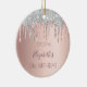 Un ornement pour un 21ème anniversaire girly et glamour. Un arrière - plan d'or faux rose avec une élégante parties scintillant d'or faux argent rose gouttes, la peinture goutte à goutte. Personnalisez et ajoutez un nom, une date et un âge de 21 ans. Le nom est écrit en or rose foncé avec un script de style moderne écrit à la main. Parfait comme décoration de fête, de faveur, de garde ou comme cadeau.