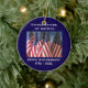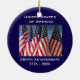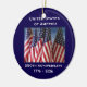 250e anniversaire 1776 à 2026, États-Unis d'Amérique, ornement d'arbre de Noël. Un grand jalon pour les USA ! Photo de drapeaux américains agitant dans le vent, et le texte patriotique en font un merveilleux souvenir - un événement unique dans toute une vie ! Grand ornement en céramique de Noël. Tous droits réservés © 2025 Alan & Marcia Socolik.