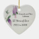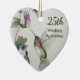Célébrez un anniversaire spécial de 25e mariage avec un ornement cardiaque personnalisé. Le joli dessin de colibri et de fleurs a été créé à partir de ma peinture originale aquarelle dans les tons pastel rose, crème, gris et vert. Vous apprécierez cette fête festive et ce souvenir romantique.