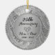 Bordure florale élégante aux tons argentés avec 2 coeurs et un diamant blanc, 25e anniversaire de Mariage en argent. Il vient en or pour le 50e anniversaire.