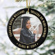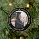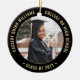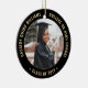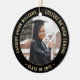 Commémorez la réussite du diplômé avec une élégante coutume noir et or deux photos ronde de graduation ornement de Noël. Les images et tout le texte sont simples à customiser et peuvent être différents à l'avant et à l'arrière. Inclure toute citation inspirante préférée, dicton motivationnel, nom et diplôme de l'école, félicitations, merci maman et papa, ou tout autre message de votre choix. Le design comporte une bordure noire, un nom typographique moderne personnalisé, une école et une année de classe en cercle, et 2 photos du diplômé, telles que des images ou des images seniors de la cérémonie de début. Veuillez noter que l'or est imprimé en couleur et non en métal. Fait une idée de cadeau de remise de diplôme de gardien réfléchi.
