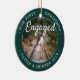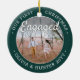 Célébrez le 1er jour férié de votre fiançailles avec une photo personnalisée 2 "Notre premier Noël Engagé" ornement céramique ronde. Tous les textes et les images de ce modèle sont simples à personnaliser et peuvent être différents ou identiques sur le devant et le dos. (AVIS DE CONCEPTION D'IMAGE ET DE TEXTE : 1) Pour ajuster la position du libellé, ajoutez des espaces au début ou à la fin. 2) Pour centrer la photo exactement comme vous voulez, la rogner en forme de carré avant de télécharger sur le site Zazzle.) En tant qu'idée, la typographie de script peut lire "Ensemble" ou "Marié". Design propose une bordure verte et blanche minimaliste moderne, des calligraphies manuscrites, les noms et l'année du couple et deux photos de votre choix. Ce gardien mariage unique fait une idée de cadeau de douche nuptiale mignonne pour la mariée et ajoute une touche élégante aux décorations de maison de Noël.
