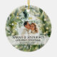 Celebrate your first Christmas as an engaged couple with this elegant, customizable ceramic ornament. Featuring the phrase "Our First Christmas Engaged" in chic black typography on a minimalist white background, this ornament is the perfect keepsake to mark this special milestone. Easily add your favorite photo and personalized details to create a unique memento for your tree. With its clean, contemporary design, this ornament beautifully blends festive charm with a timeless look, making it a cherished addition to your holiday decor for years to come. Ideal for sharing your joy with loved ones, this piece will make your first Christmas together truly memorable.