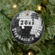 Commémorez votre 40ème anniversaire avec ce ornement photo super de Noël qui ressemble à une boule de disco. Célébrez une fête d'anniversaire spéciale, ou soirée disco avec ce ornement de bal disco imprimé personnalisé (pas de vrais miroirs impliqués) Black Circle Round Disco Ball ornement pour hommes ou femmes! Rappelez-vous de l'ancien temps. Invitation ronde en forme de cercle. Boule disco argentée brillante avec des rayons de lumière et arrière - plan brillant en noir et blanc.