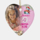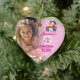 Beautiful personalised ceramic heart ornament decoration family photo keepsake of little girls 4th Christmas to hang on the wall and on the tree every year. Personalise it with a photo of your child and her name, keep a record of her as she grows up to hang on the tree. Pink 2 sided print