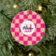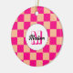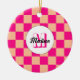 à damiers pêche rose chaud rétro Monogram Ornement. à damiers carré géométrique rétro motif cadeau de vacances pour elle. Chèque moderne vintage en carreaux de pêche rose chaud. Personnalisez avec votre initiale et votre nom personnalisés.