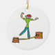 Un tendeur tient leur équilibre en se tenant sur la ligne d'inclinaison attachée entre deux souches d'arbre. Ils utilisent les bras et une jambe pour équilibrer cette illustration amusante pour les fans de slacklining.