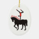acrobaties à cheval ornement personnalisé avec une femme en rouge faisant des acrobaties sur une silhouette de cheval noir.