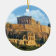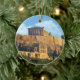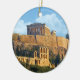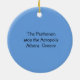 Ornement en céramique ronde avec une image du glorieux Parthénon au sommet de l'Acropole et les arches de l'amphithéâtre Herodes Atticus ci-dessous à Athènes, Grèce. Le dos est bleu avec du texte personnalisable. Voir l'ensemble de la collection d'ornement de Grèce dans la section HOME.
