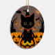 Illustration de charme avec un chaton noir mignon dans un casquette de sorcière, assis au milieu des lumières de jack-o' lanternes. Parfait pour célébrer l'esprit éffrayant et amusant d'Halloween. Une scène de charme pour les décorations festives.