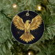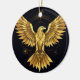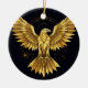 Une image étonnante d'un aigle géométrique doré, au design complexe, aux ailes écartées, positionné contre un arrière - plan sombre abstrait aux motifs mystiques. Idéal pour les thèmes de force, de pouvoir et de liberté.