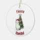 Célébrez la saison festive avec une touche amusante sur "Feliz Navidad" avec cet adorable ornement "Fleece Navidad" ! Doté d'une charmante alpaga portant un chapeau de Père Noël, devant un sapin de Noël orné d'une couverture de flocon de neige. Le design chaleureux et ludique est parfait pour apporter des vacances de joie à vos proches. Personnalisez-le avec le nom de votre famille et l'année pour le rendre vraiment unique. Parfait pour les amoureux des animaux et ceux qui apprécient une touche fantaisiste à leur arbre de vacances. Veuillez me contacter pour toute question concernant l'édition ou la conception à l'adresse pawsnclawspaperie@gmail.com.