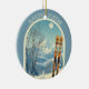 Ornament from a wonderful skiing holiday in the beautiful mountains of Alyeska Alaska ski area! This Ornament features an arch with a stunning blue-grey mountain landscape and retro ski boards in an orange tribal pattern in the foreground. The rest is in a lovely light blue tone with the location lettering in a modern font. The design is a lovely combination of retro and modern, and I hope you enjoy it!