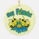 Des abeilles mignonnes aux bosses sur une jolie fleur bleue avec texte BEE AMIS.