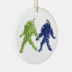 L'ornement des Amis du raisin. Une paire de grappes de raisin, une verte et une violette, marchent main dans la main. La tige du bouquet vert semble regarder le bouquet pourpre. La tige de raisin mauve retourne avec impatience le regard. Cette illustration crée une scène fantaisiste avec les caractéristiques humaines de l'amitié, de l'amour, de la gentillesse et de la tolérance alors que leurs pas rebondissants les transportent ensemble.
