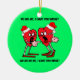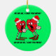 Ho ho ho, je t'aime plus ! Aucun ho ho ho, je t'aime plus ! Deux coeurs rouges avec des casquettes de père Noël discutant au sujet de qui s'aime davantage. Ornements drôles de Noël d'amants pour décorer l'arbre de vacances.