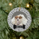 Un joli ornement photo de chien personnalisé avec un motif d'os et d'empreintes grises et noires avec un élément d'os de chien pour ajouter le nom de votre animal de compagnie.