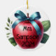 Ornement de Noël personnalisé "Best Teacher Ever" - Apple & Bow Design Montrez votre appréciation pour un enseignant extraordinaire avec ce charmant ornement de Noël personnalisé! Doté de jolies pommes avec des arcs sur le devant et de l'expression "Meilleur enseignant jamais", cet ornement est une façon parfaite de dire merci. Le dos permet de personnaliser l’espace avec le nom de l’enseignant et l’année, créant ainsi un souvenir chaleureux qu’ils chériront chaque saison de vacances. Personnalisable avec le nom et l’année de l’enseignant sur le dos Un design pomme et arc adorable parfait pour la classe Une excellente façon d’honorer le meilleur enseignant jamais Fait un cadeau de vacances réfléchi et festif Célébrez le dur travail et le dévouement de votre enseignant avec ce ornement enseignant personnalisé qui est sûr d’égayer leurs vacances!