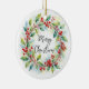 Aquarelle Botanique Holly Et Berries En Céramique Wreath Ornement. Personnalisez avec vos détails !