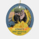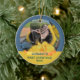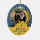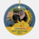 Festive Ara Parrot Pet 1er Noël Ruban Photo Ornement en céramique. Customisez cette fête de Noël avec le nom, la photo et l'année de votre animal de compagnie. Grand souvenir de Noël pour un propriétaire de perroquet.