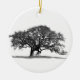 Une photo en noir et blanc d'un beau chêne qui s'étend.