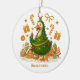 Célébrez la saison avec cette adorable oie habillée comme un sapin de Noël décoré, avec des ornements et une tête d'étoile. Un ornement de gardien amusant et unique qui fait un cadeau de vacances parfait ou la décoration d'arbre de famille. Personnalisez avec un nom ou une année pour le rendre spécial!